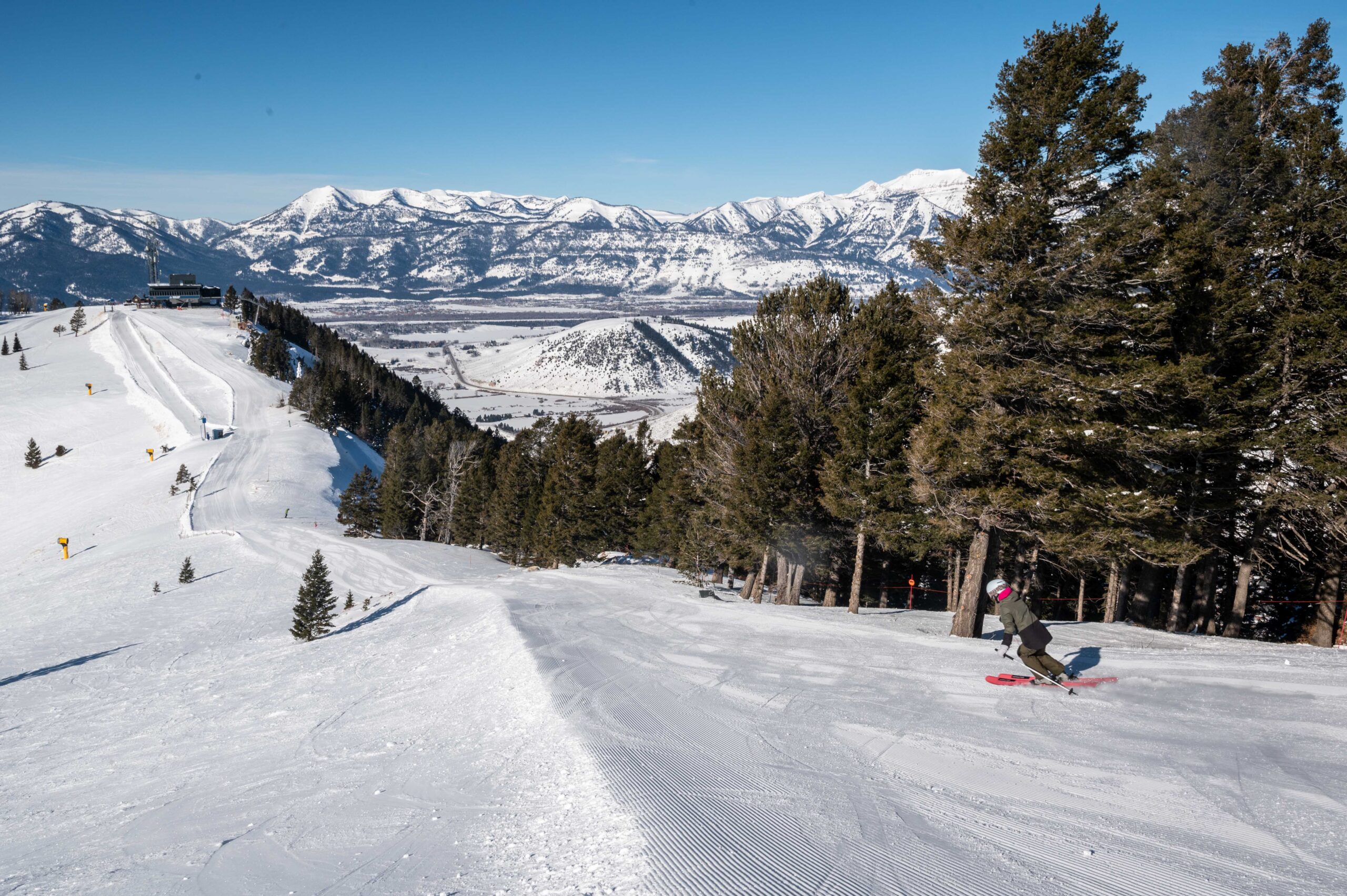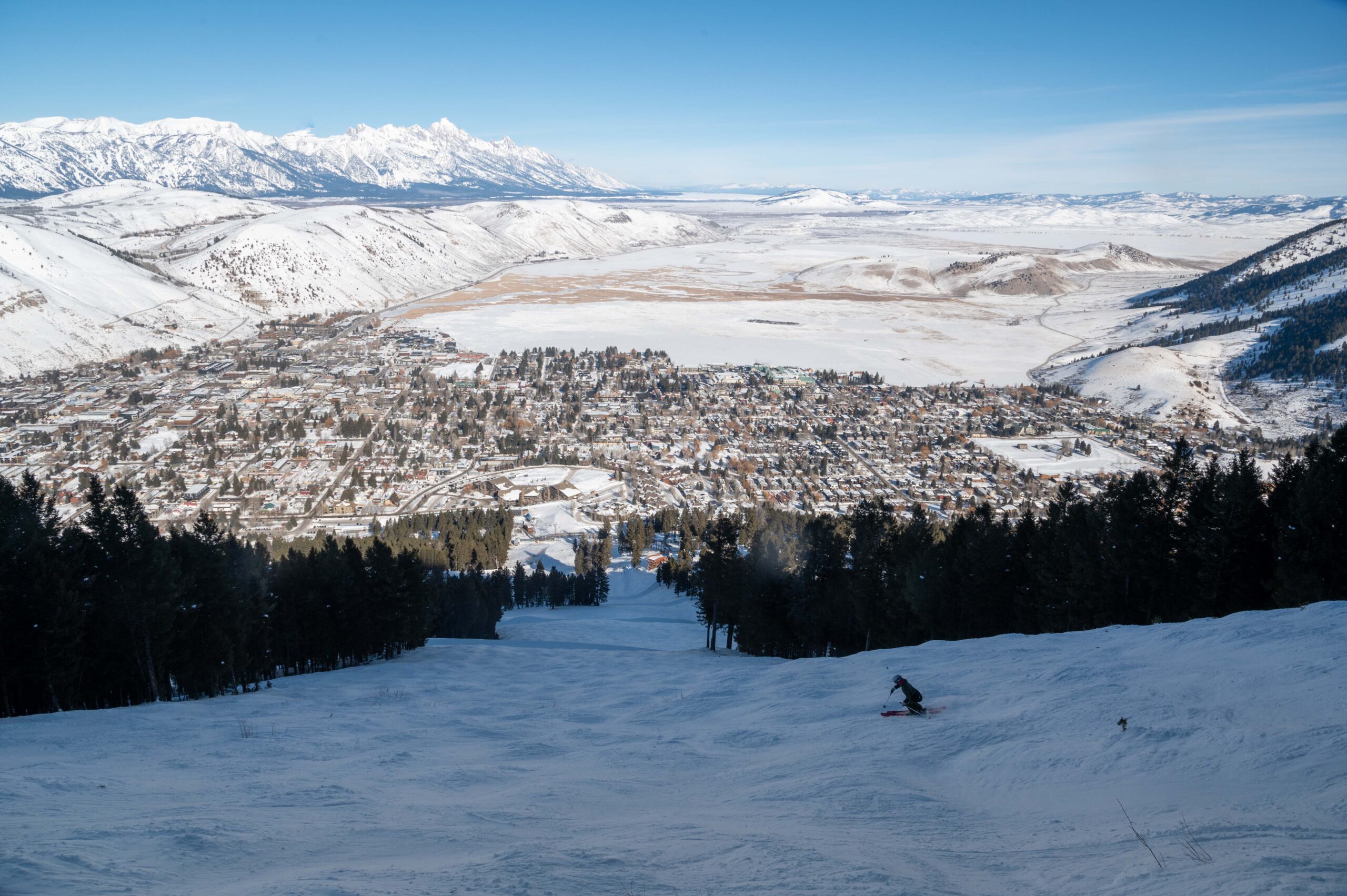 Cold and sunny groomer laps at Snow King Mountain, WY.