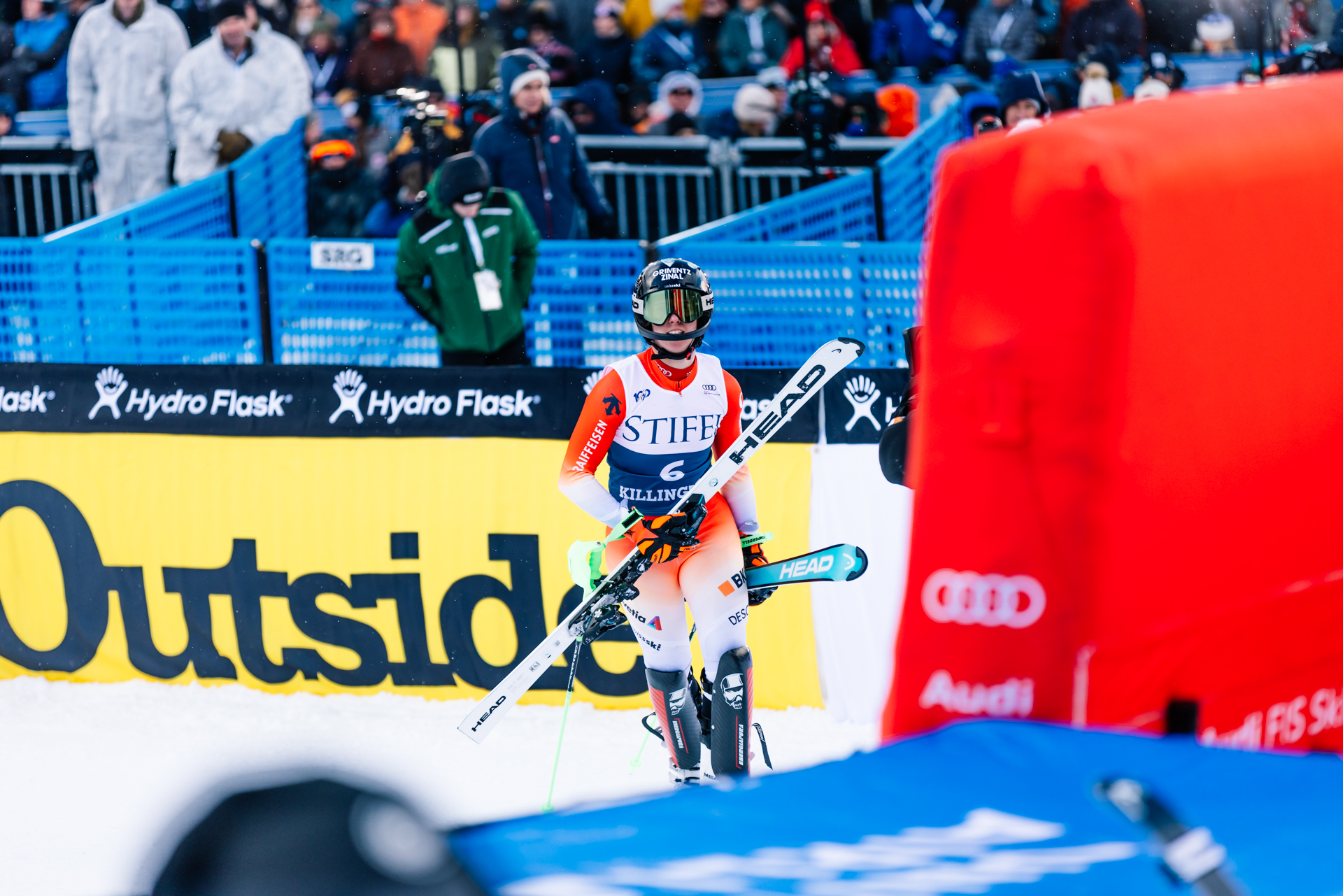 Among 21,000 roaring spectators, Mikaela put down a stunning first run that held the top spot until run two. In run two, Shiffrin looked poised to take her first-ever win at the GS in Killington but ultimately crashed out. When Shiffrin crashed, the crowd went from pandemonium to complete silence, as if someone had unplugged the speakers. The concern for Shiffrin was palpable—thankfully she is okay despite an injury to her abdomen.