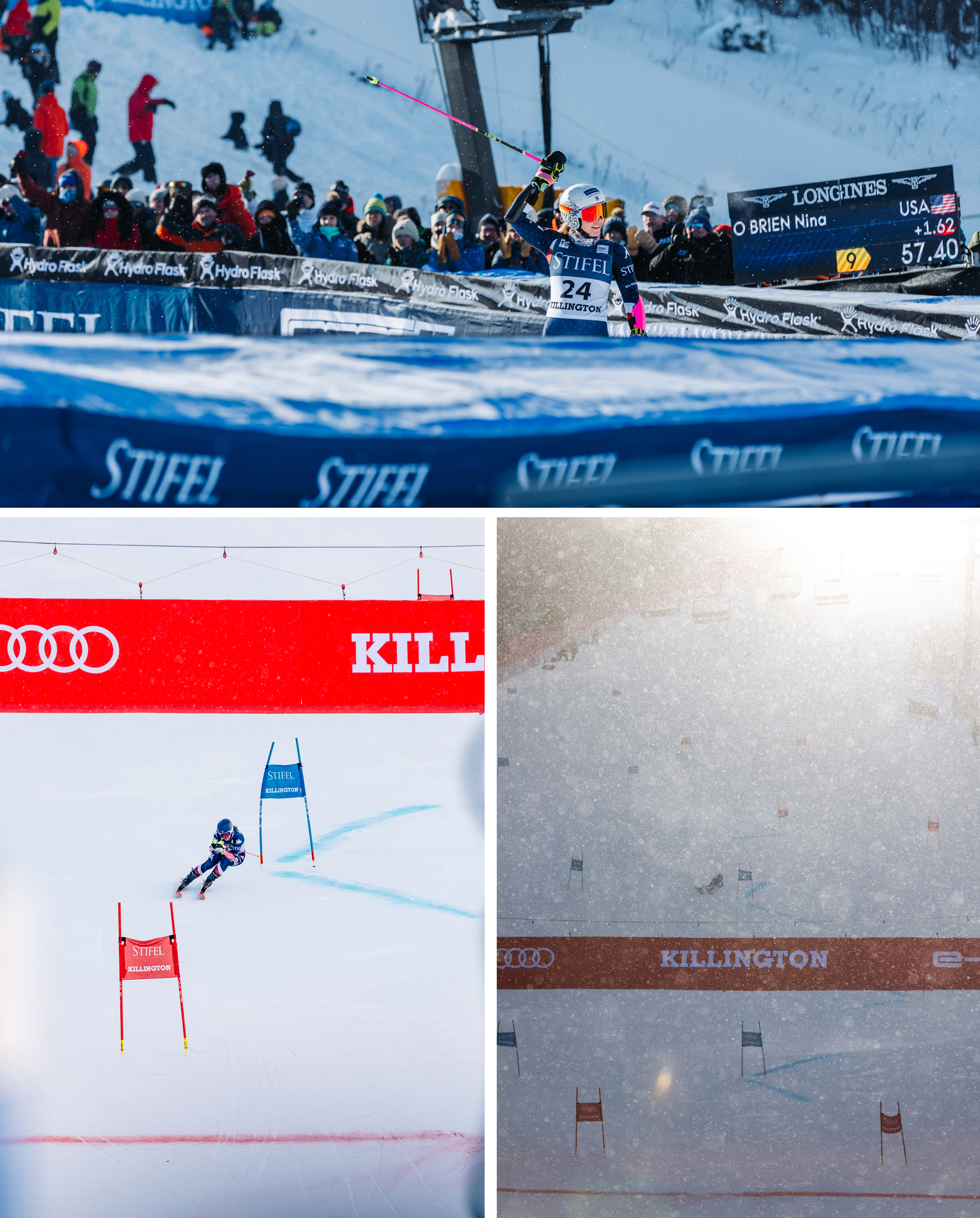 As a recent transplant to Massachusetts from out west, attending the Stifel Killington Cup quickly rose to the top of my winter bucket list. Not only to watch the world’s best fly down a glacially frozen slope at mind-bending speeds but to see this region get the credit it deserves. Ski racing is part of New England’s DNA, and its passion was loud and present this weekend. Heading into the 2024 event, Shiffrin was on the brink of her 100th World Cup win, a milestone she could achieve on home soil. It created a contagious buzz throughout the venue—fans came out in full force with signs, cowbells and giant American flags. Ski racing fan or not, it was undeniable that history could unfold.