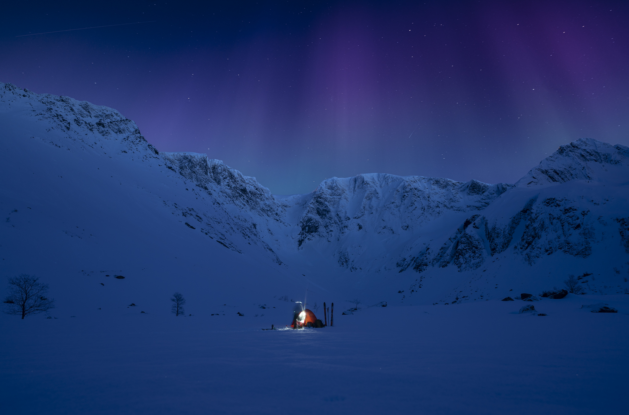 Enthralled by the possibility of exploring seldom-traveled terrain, relying entirely on their own mountain skillsets, Strøm and Rhøme dreamed up a four-day traverse of Loppa, linking together ski lines and hauling overnight gear on their backs.