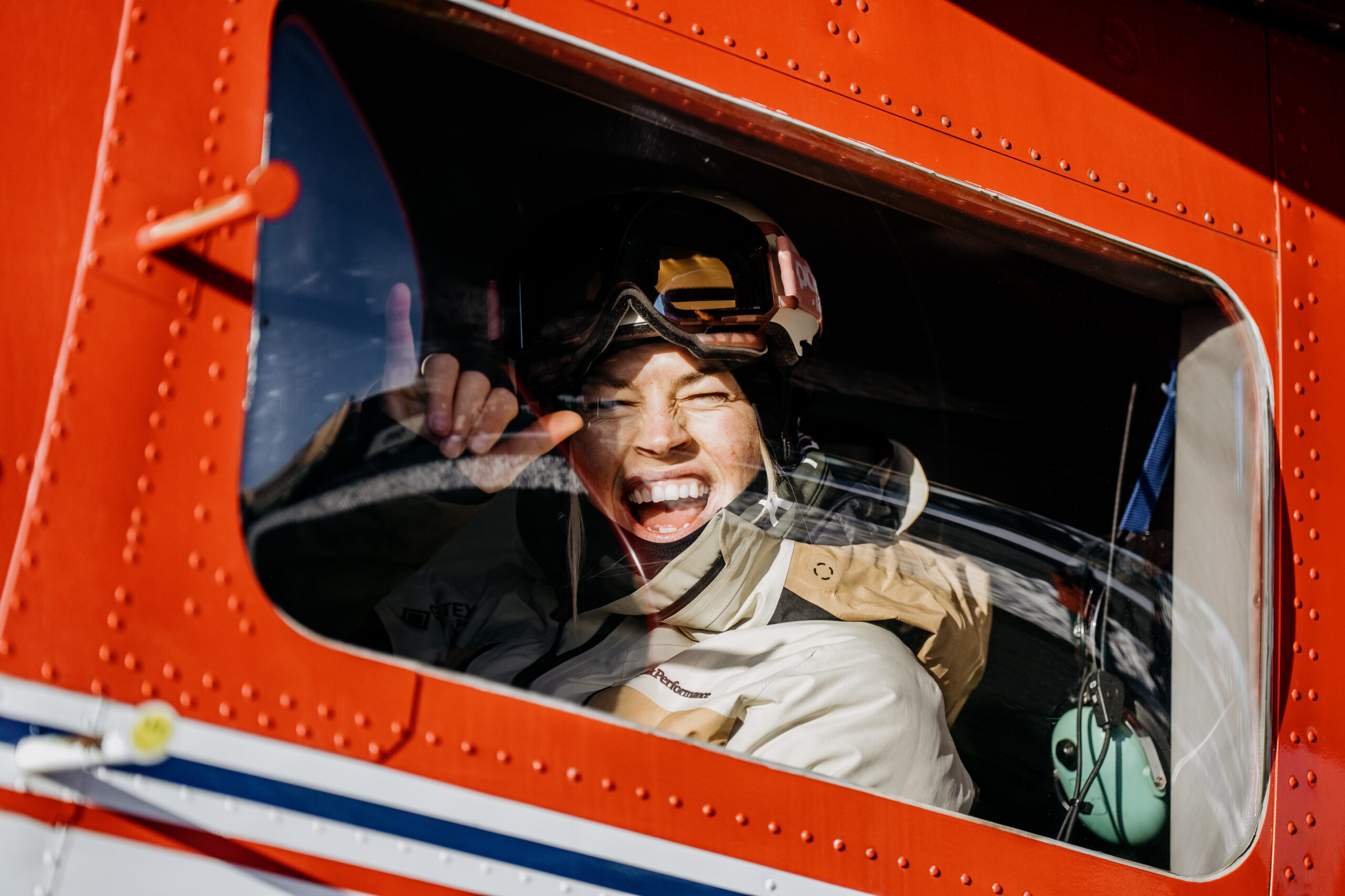Freeride World Tour champion Hedwig Wessel loading up the heli for a practice run. Photo: Chad Chomlack/Natural Selection