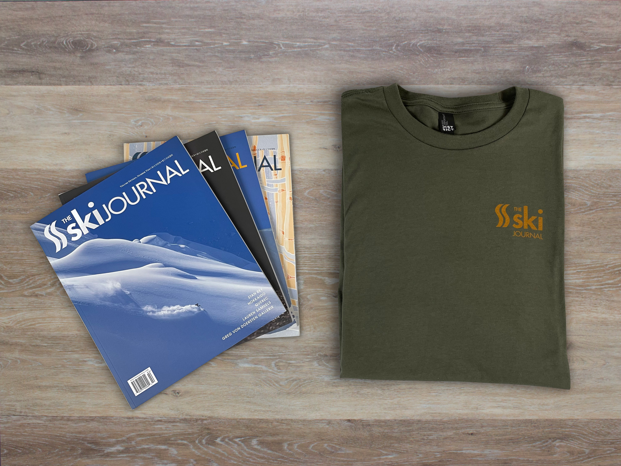 Subscription includes 4 issues of The Ski Journal and 15% off the All Day & All Night Tee.