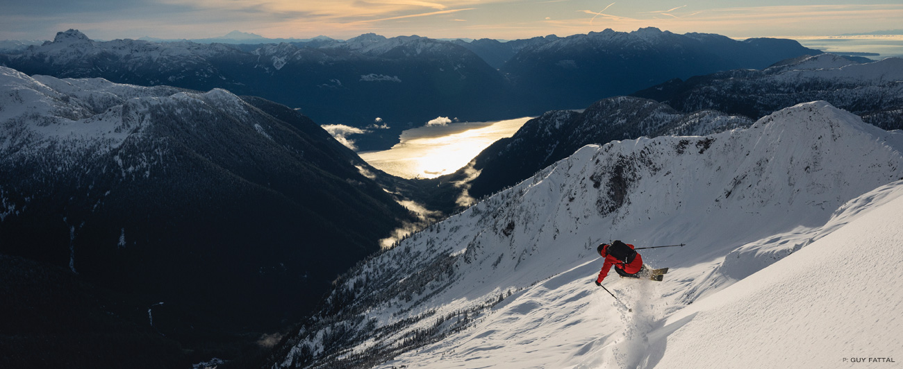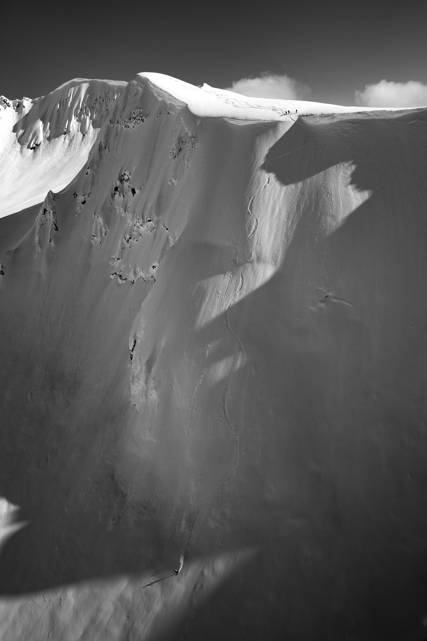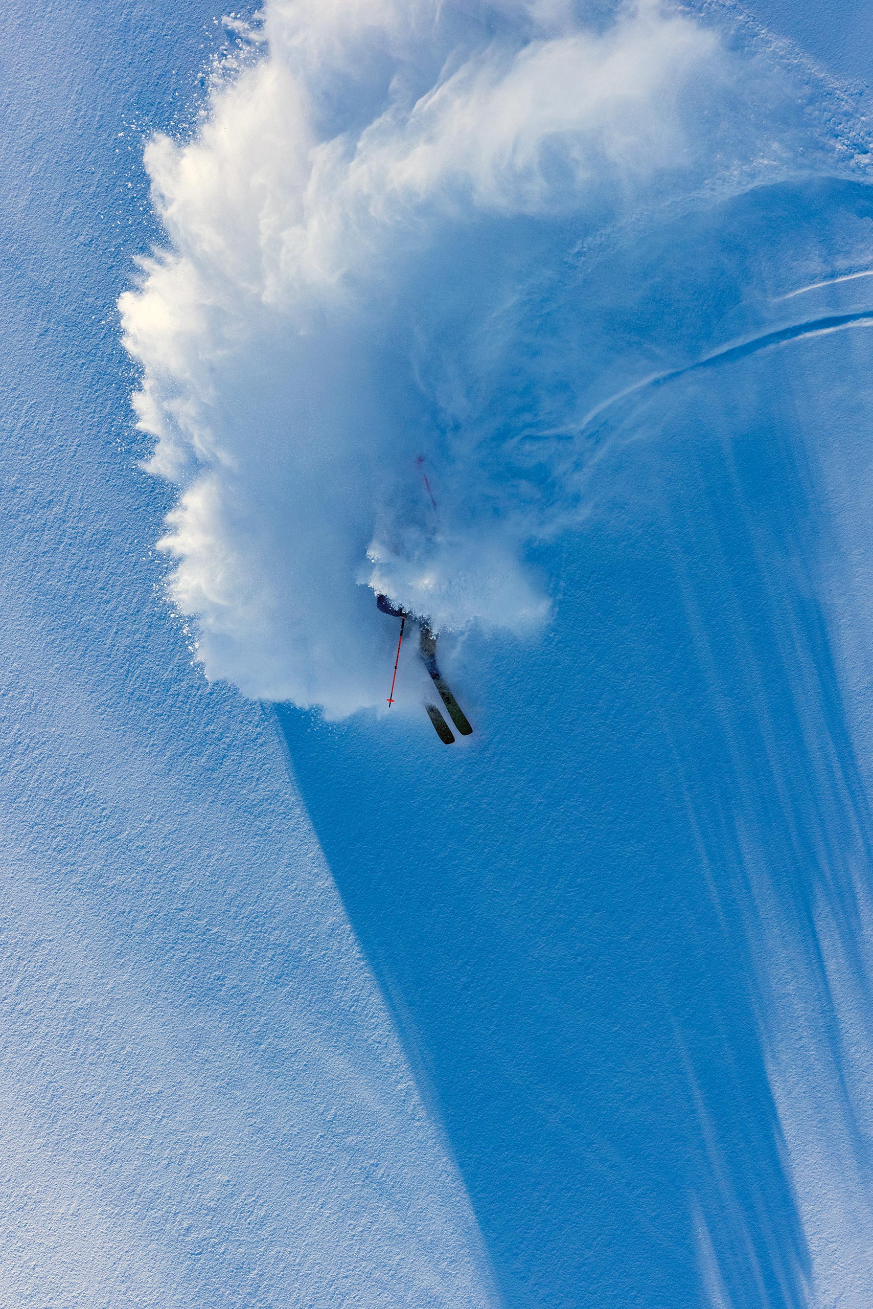 “Eva Bingham opens a line for her clients while guiding near Girdwood, AK. Growing up at her family homestead in the foothills of the Chugach, Eva could only dream of the nearby valleys that lay out of reach. Now, she makes a living exploring her backyard via helicopter with Chugach Powder Guides.” Photo: Dan Starr
