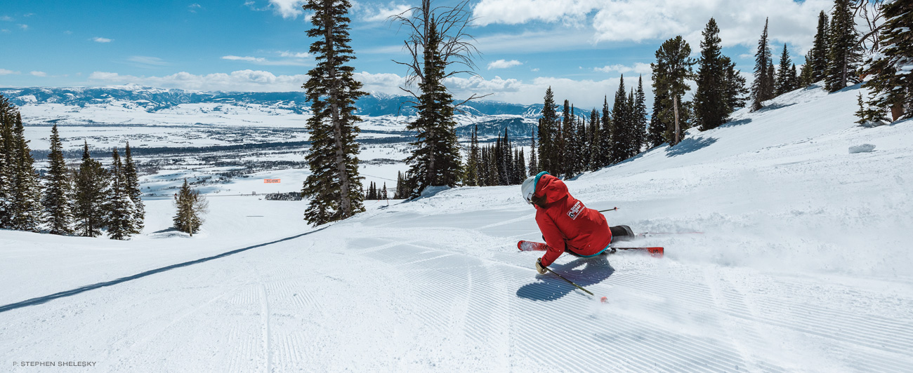 Ann Schorling greeted us with a big smile as we skated toward the Teewinot chair. Throughout the morning, Schorling analyzed our form like an engineer reviewing schematics, sharing small tips—like how to initiate a turn—as we lapped the three inches of cowboy pow accumulating on the mountain.