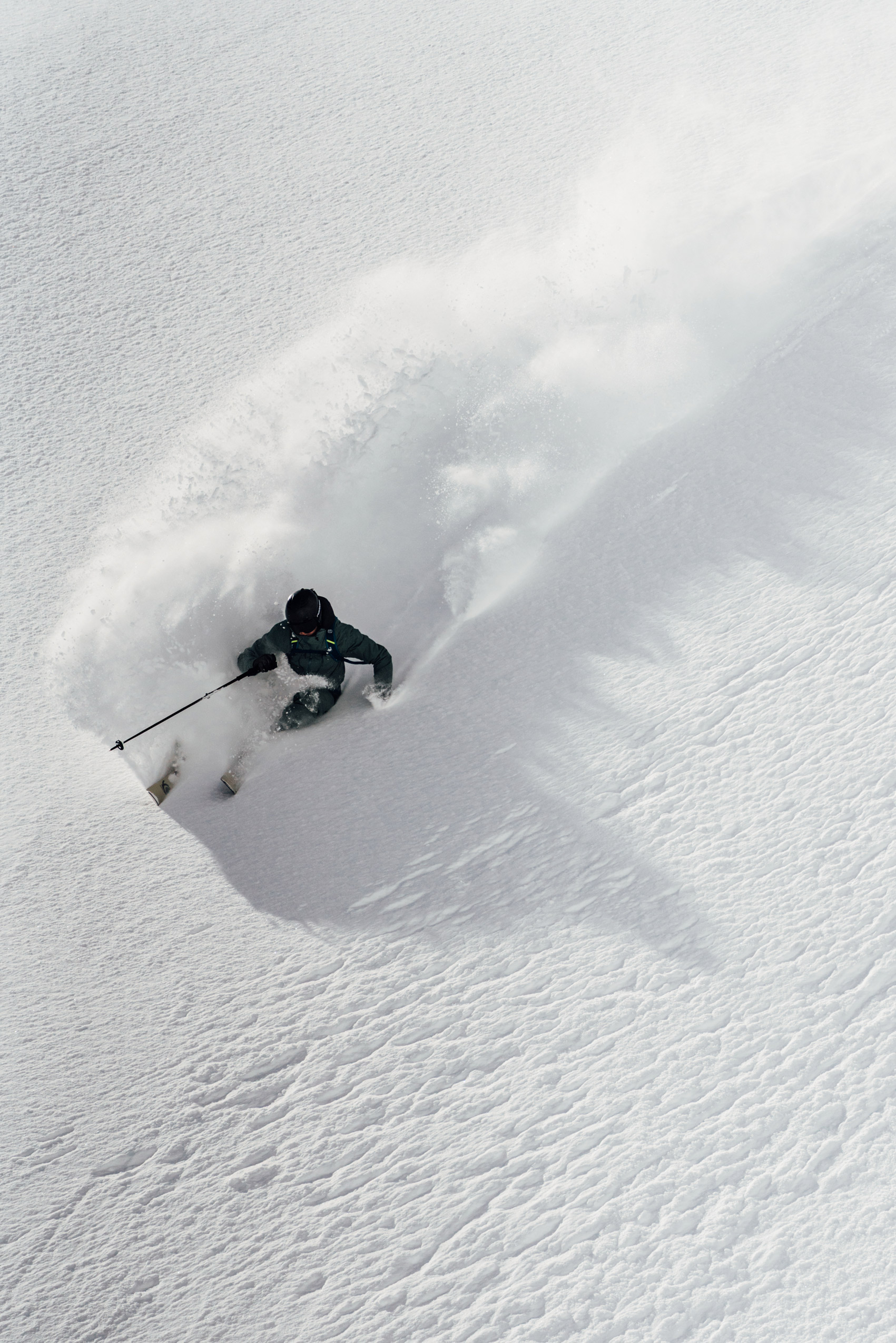 The Dark Side, as the name implies, is an adult playground of north-facing terrain, sheltered from the sun and chock-full of steep trees, alpine bowls and long, sustained tubes and chutes. It’s where we’d spend the next two days feasting on what The Ski Journal Creative Director Jessie Lu Galbraith referred to as “life-affirming turns.”