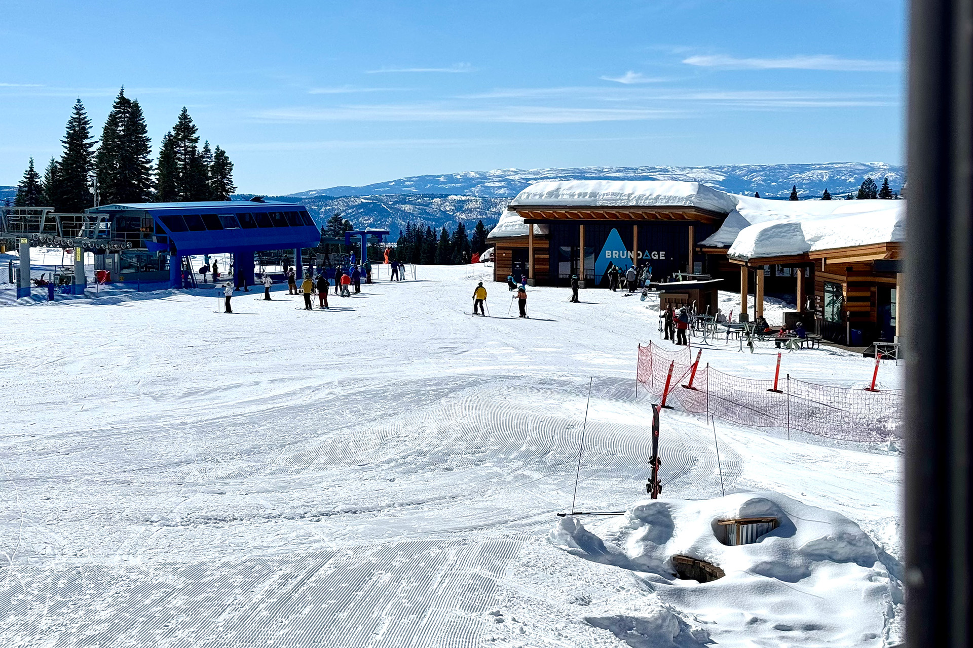 We exit the Tamarack Express and hop on the Summit Express which will bring us to the 7,700-foot summit of Tamarack Resort. On the lift, Beth points lookers left. She tells us that the best terrain for more advanced freeskiers is accessed by traversing from the summit, down the ridgeline and into Grouse Bowl. She explains that, so long as temps stay below freezing, her and her friends often find fresh lines to ski even multiple days after the area’s most recent snowstorms—untouched lines that, if navigated correctly, lead right back into the ski area. Isabel and I would love to explore all that Tamarack’s 1,100-plus acreage has to offer, but we have just enough time for one run. We do our best to soak up Tamarack’s postcard-worthy ambience, then we pack the van and vamoose. Next stop: Brundage.