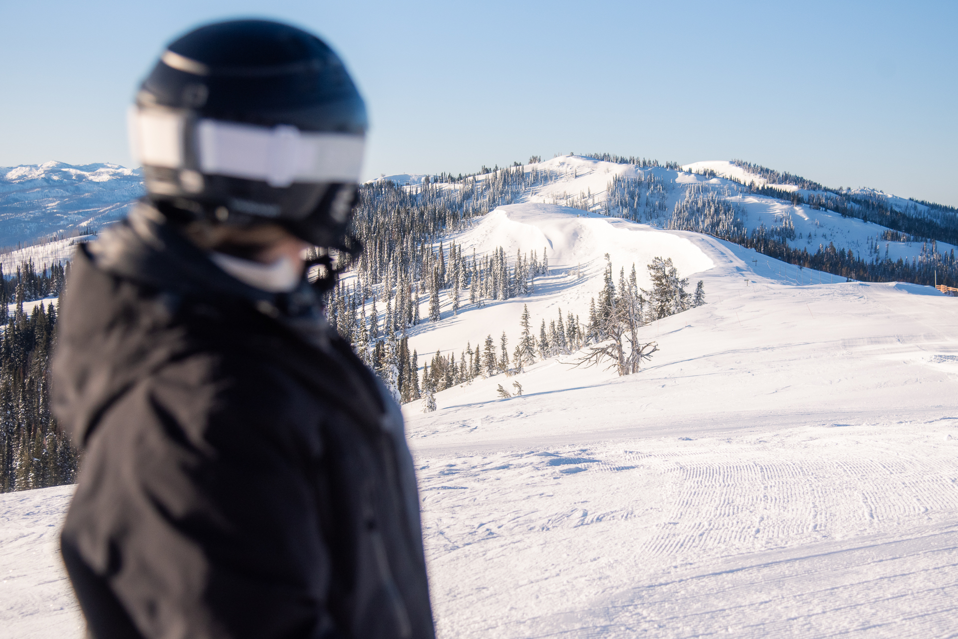 Scoping lines at the top of Tamarack Resort. Some of the best terrain at the ski area is found off this ridge, namely Grouse Bowl, according to longtime local and recently appointed Director of Marketing Beth Bowman.