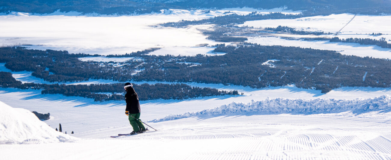 I rise before the sun at Tamarack Resort, a ritzy ski area in central Idaho’s Payatte River Mountains. My body must still be on East Coast time. It’s dry here. My partner, Isabel, and I are visiting from New York and, admittedly, our timing for this trip could have been better. We flew west with dreams of soft turns in Idaho’s iconic powder but managed to miss a few weeks’ worth of storms by only a couple of days. Just prior to our arrival, ski areas across the Gem State were consistently covered with fresh snow all month long. Now, in the final week of February, we find ourselves smack dab in the middle of a brief melt-freeze pattern and the next set of refills scheduled to arrive soon after we depart. C’est la vie.