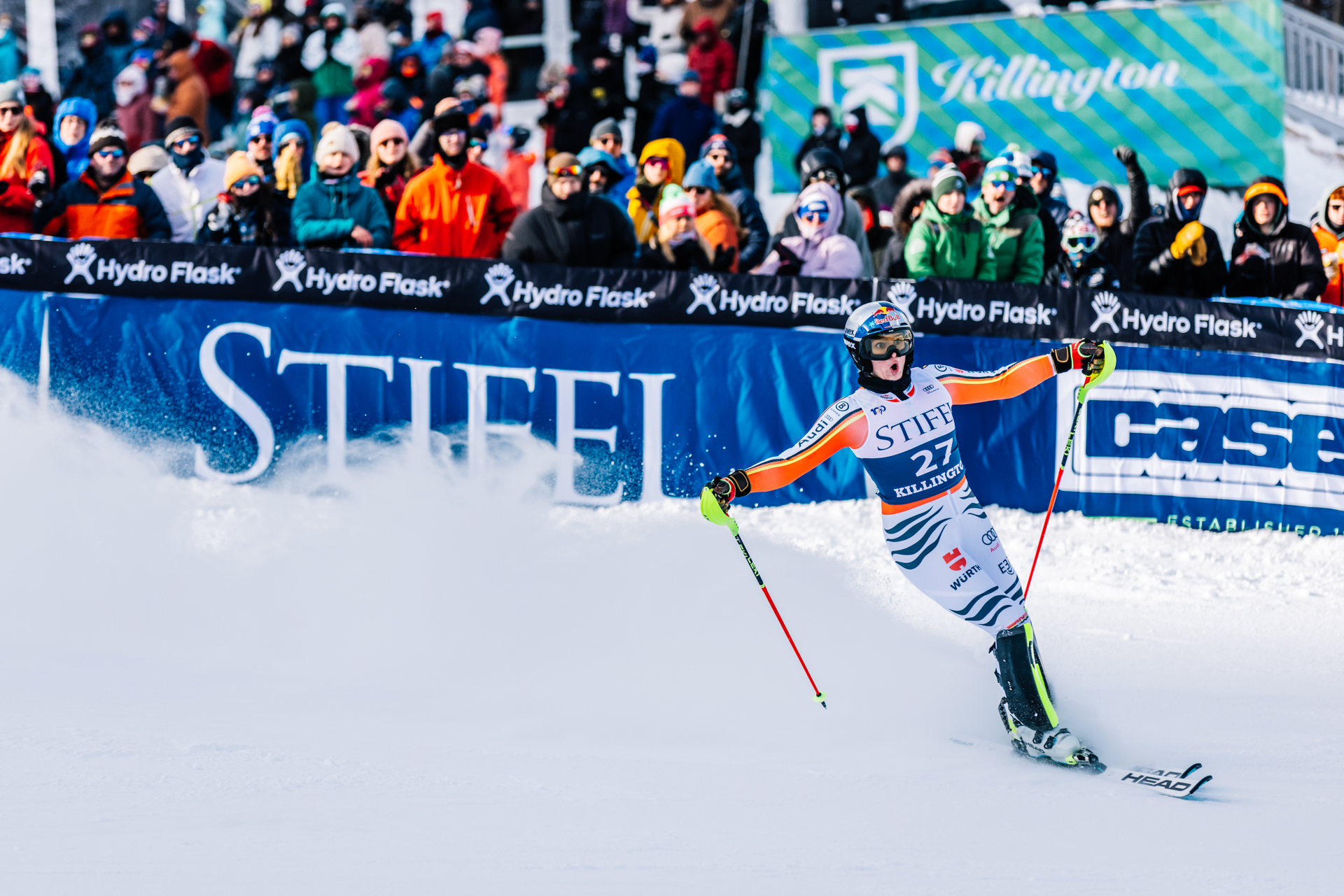 There are only three U.S. stops in the 2024/25 FIS Alpine Ski World Cup circuit, compared to the 30 plus scattered throughout Europe. One of those events is the Stifel Killington Cup at Killington, VT, the only World Cup race held in the Northeast, featuring the women’s technical events. In 2016, it was added back into the circuit after a 25-year hiatus, and the New England community has cherished its return ever since. Every year, the Women’s Giant Slalom and Slalom races draw a crowd of about 40,000 spectators, making it a fan favorite for New Englanders and racers alike. Even Canadian and European racers—like Sara Hector—who race at this venue comment on the passion and love of the local fans.