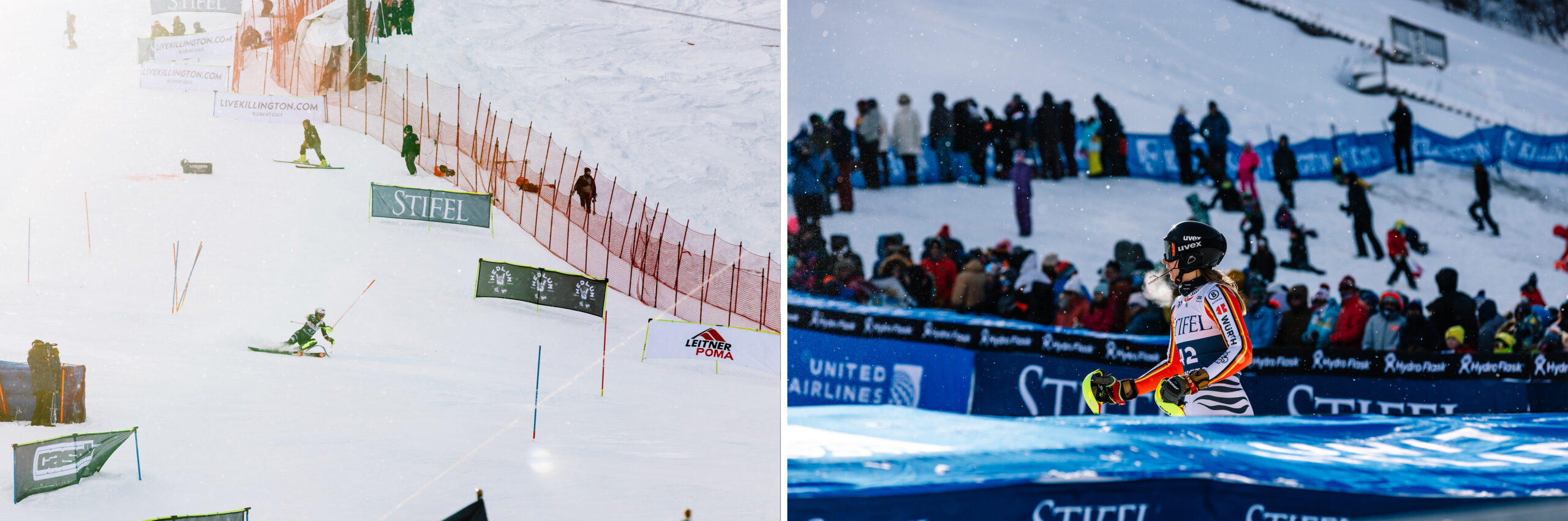 As a recent transplant to Massachusetts from out west, attending the Stifel Killington Cup quickly rose to the top of my winter bucket list. Not only to watch the world’s best fly down a glacially frozen slope at mind-bending speeds but to see this region get the credit it deserves. Ski racing is part of New England’s DNA, and its passion was loud and present this weekend. Heading into the 2024 event, Shiffrin was on the brink of her 100th World Cup win, a milestone she could achieve on home soil. It created a contagious buzz throughout the venue—fans came out in full force with signs, cowbells and giant American flags. Ski racing fan or not, it was undeniable that history could unfold.
