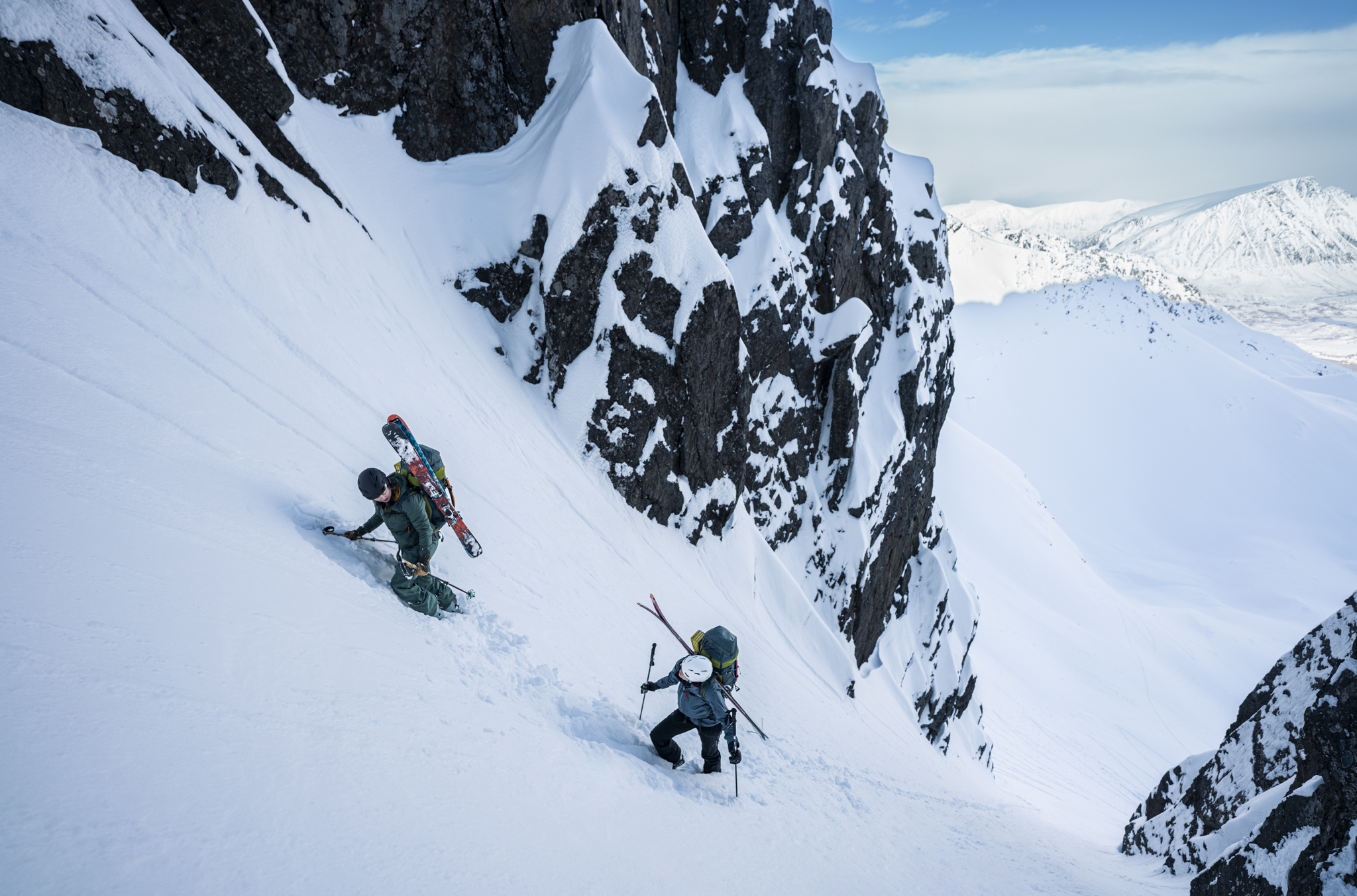 Enthralled by the possibility of exploring seldom-traveled terrain, relying entirely on their own mountain skillsets, Strøm and Rhøme dreamed up a four-day traverse of Loppa, linking together ski lines and hauling overnight gear on their backs.